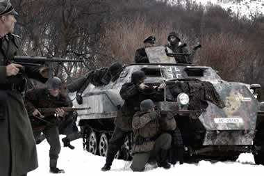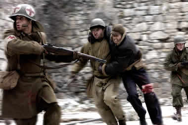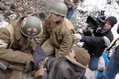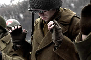To create some of the fighting, war re-enactors from all over the country flew in at their own expense. These are people who have made re-enacting battles from World War II a hobby-much like the Civil War re-enactors do. They come with costumes representing both sides and other gear.