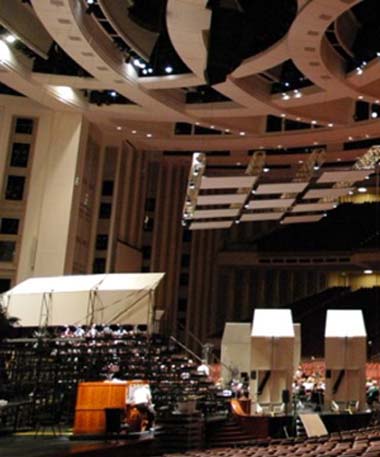 A sound shell and an “acoustical cloud” help keep the sound from getting lost in the vast reaches of the Conference Center.
