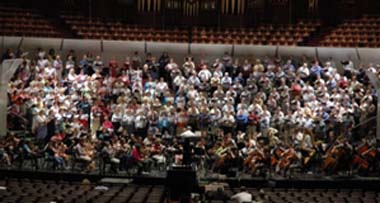 in a Mormon Tabernacle Choir/Orchestra at Temple Square recording is an impressive sight.