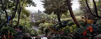 Marshall and Young toured Vermont and the East coast as inspiration for the more lush scenes and dramatic skies in the creation room. The hard rock coasts of New England suggested the shores of a newly-formed world. Christensen and Young went to Florida to study the lush gardens there.