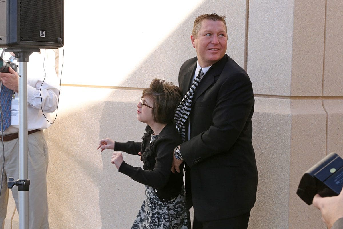 He noticed this little special-needs girl, Kendell Crum. Her father, Randell brought her over a little closer (almost in disbelief and excitement) to be able to talk to President Monson. Kendell had her eyes glued on the Prophet.