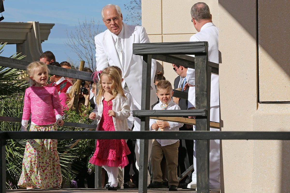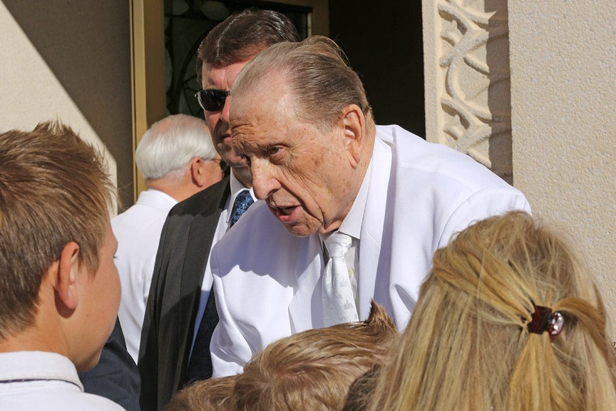 With 1,800 people waiting inside the Temple for the Prophet to return, President Monson stopped again and talked to the last group of children by the door. He encouraged them. He shook hands with as many as he could reach. He knew that this is what they would remember about this day—that personal touch. Having witnessed all of this in just seventeen minutes, the words of one of my favorite hymns came to my mind: “Savior, Redeemer of my soul, Whose mighty hand hath made me whole, Whose wondrous pow’r hath raised me up And filled with sweet my bitter cup! What tongue my gratitude can tell, O gracious God of Israel. Never can I repay thee, Lord, But I can love thee. Thy pure word, Hath it not been my one delight, My joy by day, my dream by night? Then let my lips proclaim it still, And all my life reflect thy will. O’er-rule mine acts to serve thine ends. Change frowning foes to smiling friends. Chasten my soul till I shall be In perfect harmony with thee. Make me more worthy of thy love, And fit me for the life above.” Those words come as close as I can exclaim what I felt as I observed this Prophet of God through my camera lens in Arizona.